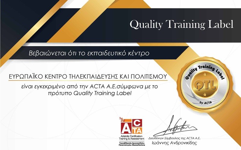 Είναι πιστοποιημένο από την Acta Τεχνοβλαστός του ΑΡΙΣΤΟΤΕΛΕΙΟΥ ΠΑΝΕΠΙΣΤΗΜΙΟΥ ΘΕΣΣΑΛΟΝΙΚΗΣ στο πρότυπο QTL (Quality Training Lebel) επιπέδου EXPERT!